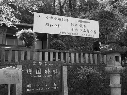 京都東山、円山公園から南へ下り“ねねの道”と“二年坂、三年坂”の間に東山に向かって“維新の道”と云う 70mほどの上り坂があるのですが、その先に このような看板がある。 この神社の中には、木戸孝允(桂小五郎)妻 幾松の墓や 坂本龍馬、中岡慎太郎の墓があ…